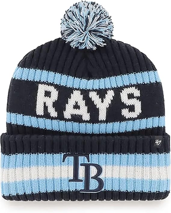47 MLB Unisex-Adult Officially Licensed Tampa Bay Rays Primary Logo Bering Sport Knit Cuffed Pom Beanie Cold Weather Hat