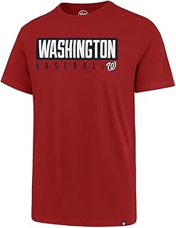 47 MLB Washington Nationals Men's Team Color Distressed Imprint Primary Logo Wordmark Short Sleeve Baseball T-Shirt